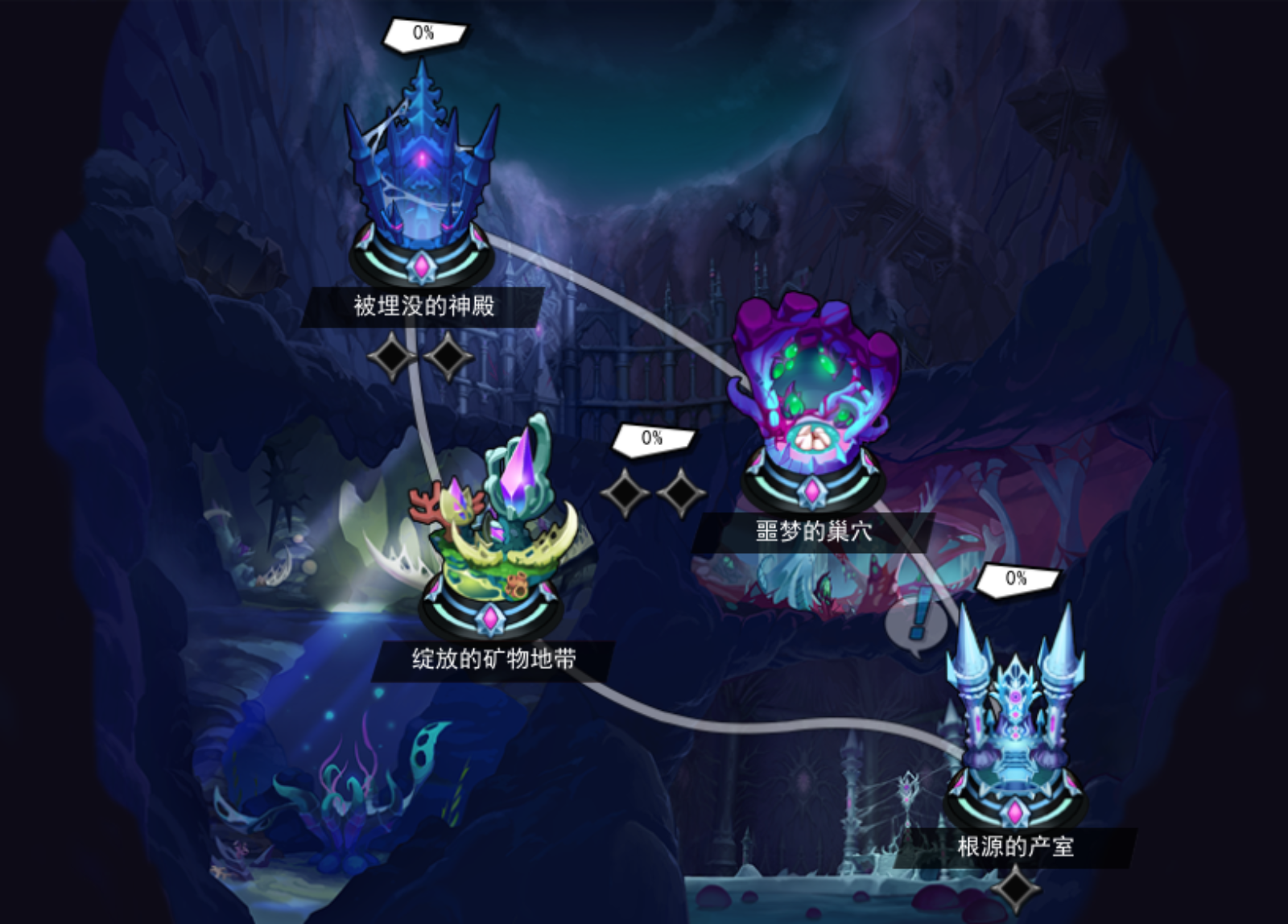 2)2个队伍各自通关“绽放的矿物地带”、“噩梦的巢穴”1次,或1个队伍通关以上2个副本各1次后,可以进入“根源的产室”副本。